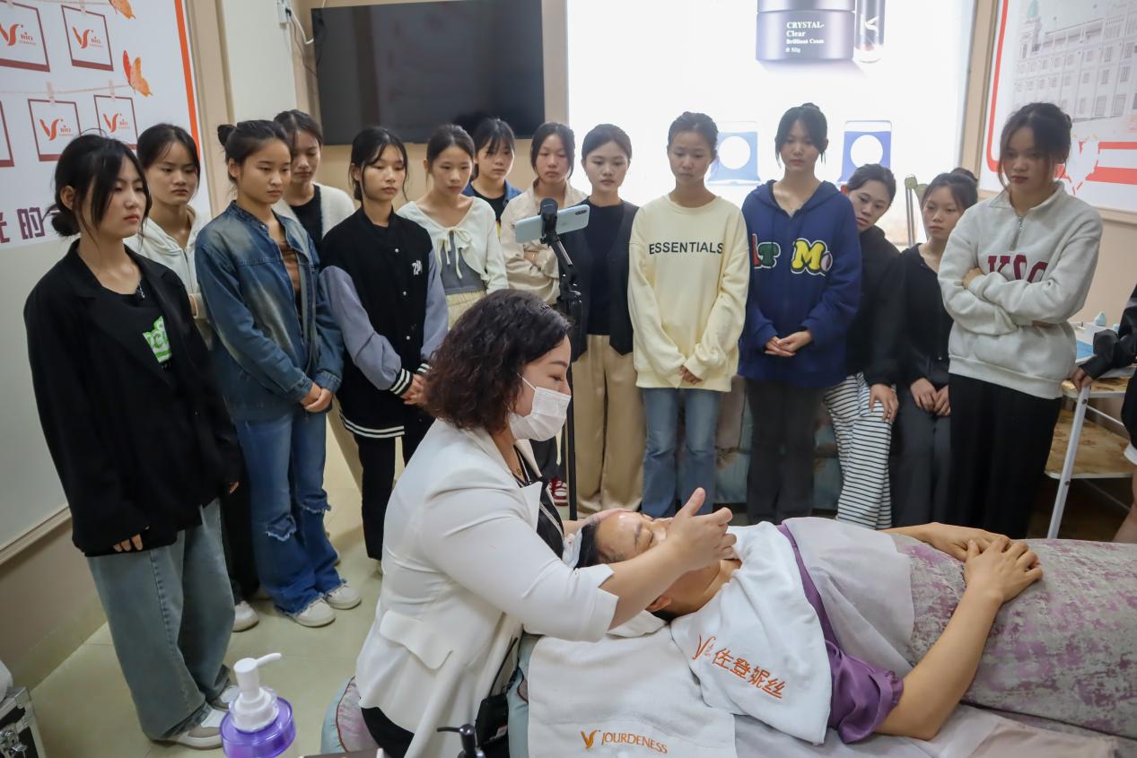 校企双方秉承“育人为本、产教融合”的理念,着力培养高学历、高素质、高技能的美容专业人才,佐登妮丝资深导师还进行了实训教学的操作展示和美容行业前景分析的讲座。