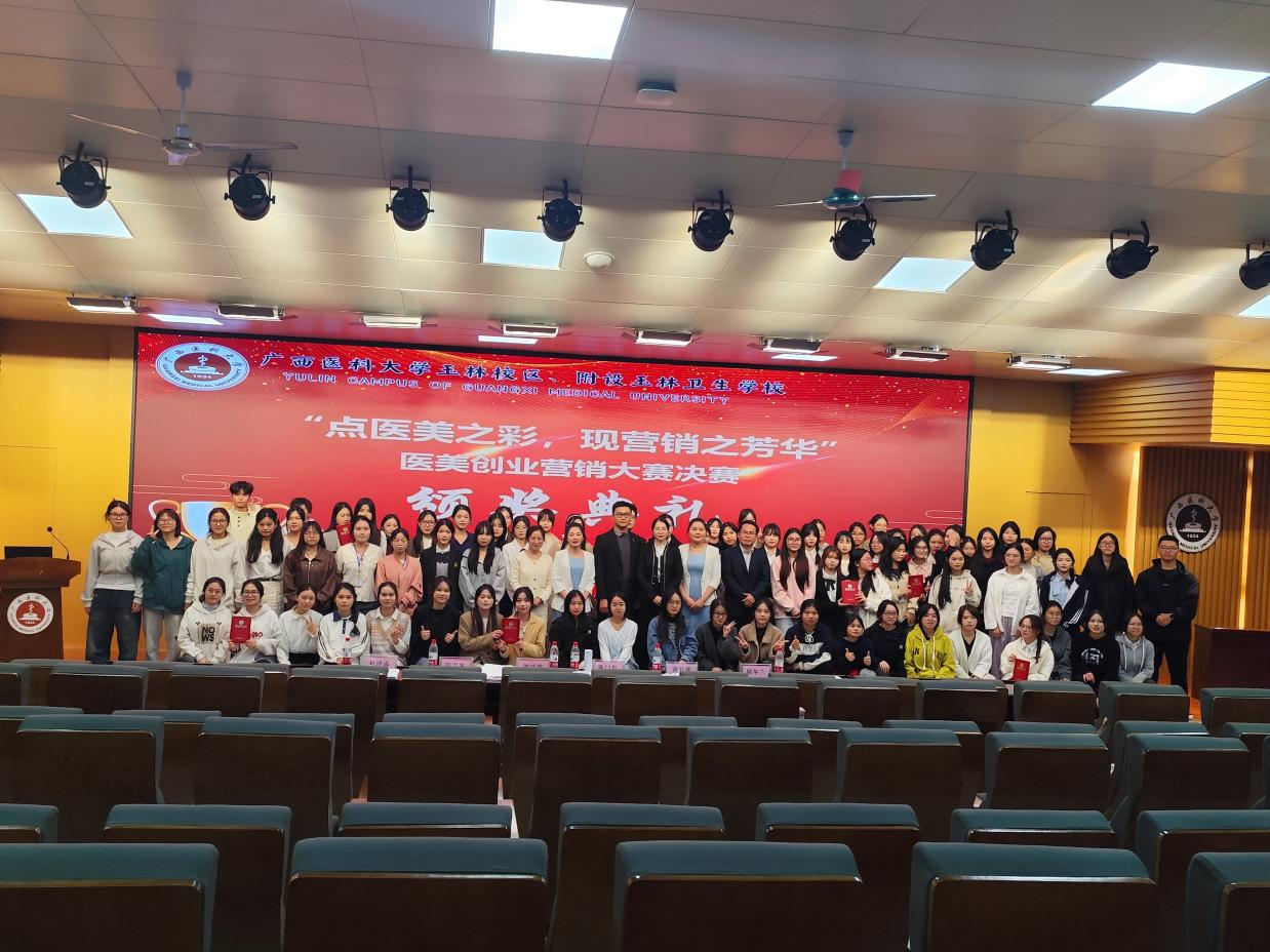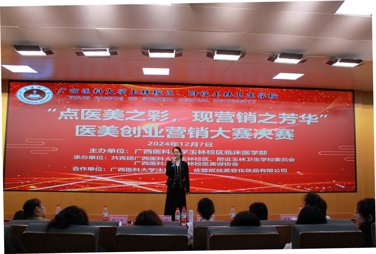 为了让学生迈开自己创业的第一步,亲身体验销售过程,培养学生的团队意识和团队合作精神,广西医科大学玉林校区特此举办了“点医美之精彩,现营销之芳华”2024年医美创业营销比赛。本次比赛分为线上营销、线下营销以及决赛,活动从2024年11月25日开始,历时14天,于12月7日在六号楼一楼报告大厅成功举办决赛。此次比赛由广西医科大学玉林校区临床医学部主办,共青团广西医科大学玉林校区、附设玉林卫生学校委员会、广西医科大学玉林校区美容协会承办,广西医科大学沐光团队、佐登妮丝美容化妆品有限公司为本次比赛协办单位。