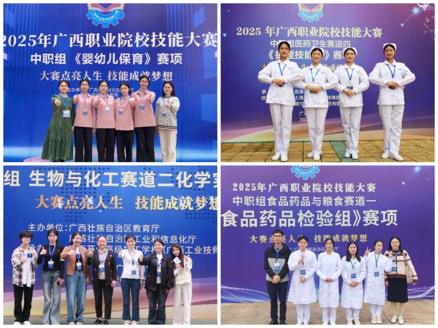 此次大赛,玉林校区在多赛道全面开花。中职组婴幼儿保育、护理技能、化学实验技术赛项以规范的操作和严谨的态度赢得评委认可。高职组健康养老照护、康复治疗技术赛项则结合传统与现代技术,助力全民健康战略落地。
