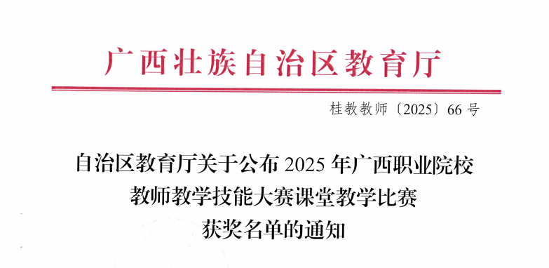 • 喜报:我校在2025年广西职业院校教师教学技能大赛中斩获佳绩