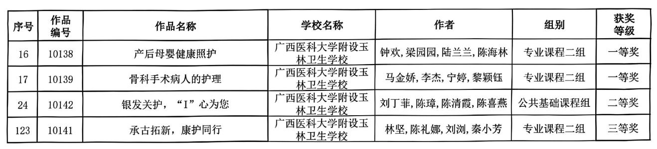• 近日,2025年广西职业院校教师教学技能大赛课堂教学比赛结果揭晓,广西医科大学附设玉林卫生学校捷报频传,共荣获一等奖2项、二等奖1项、三等奖1项,充分展现了我校教师扎实的教学功底和卓越的团队协作能力。