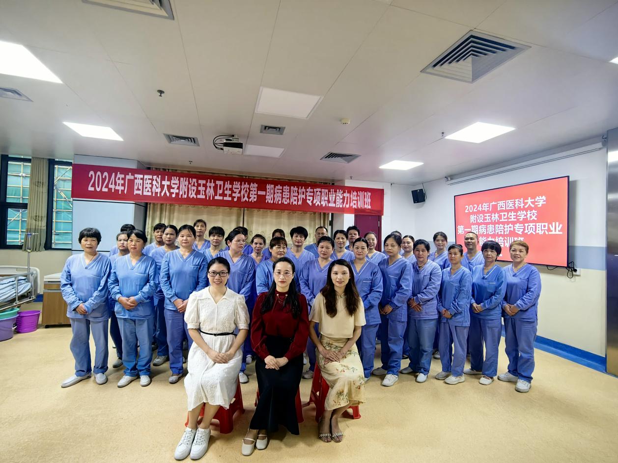 此次培训班得到了玉林市人力资源和社会保障局、玉林市卫生健康委员会、玉林市第一人民医院和玉林佳佳陪护理机构的大力支持,培训不仅提高了学员们的专业技能水平,也为玉林市医疗行业的发展注入了新的活力和动力,同时高质量提升了我校的社会服务能力。相信在不久的将来,这些优秀的陪护人员将成为医疗行业中不可或缺的一份子,为患者的康复和健康贡献自己的力量。