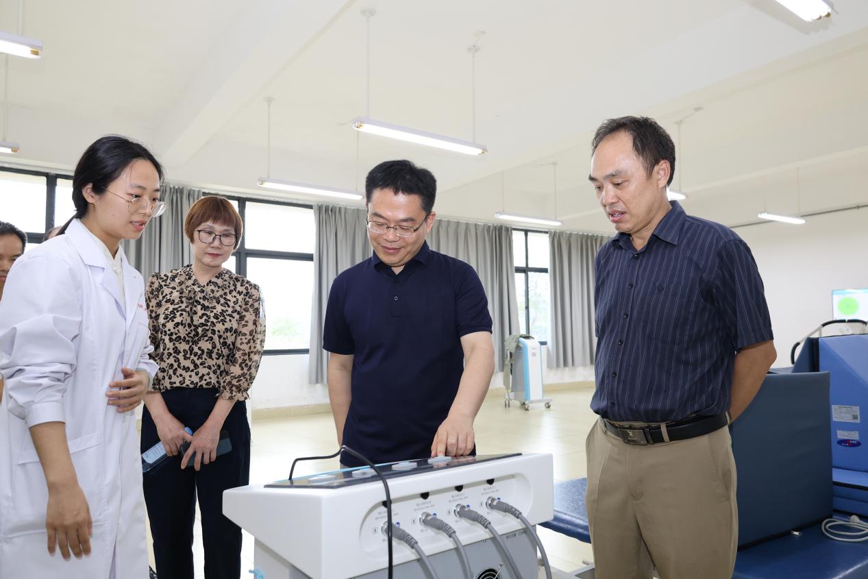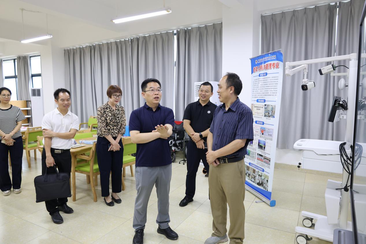 在调研过程中,张海鹏一行深入玉林校区21号楼实训室,详细了解老年人服务与管理、婴幼儿托育、康复治疗技术等专业建设发展情况,重点听取智慧康养、托育照护等实习实训的标准化建设与专业化培养的探索创新,对我校在硬件设施投入、人才培养路径和产教融合规划等方面取得的成效表示肯定。他指出,玉林校区要紧密结合地方产业发展需求,聚焦民生保障、加强校企合作,培养更多更高质量的特色专业人才。