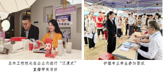 围绕玉林中医药产业发展需要,玉林卫校构建了护理、医学技术、中医药与大健康等高契合度专业集群,其中护理和药剂专业获评为省级优质专业点。人才培养不止于课堂。学校持续推进“人才留玉”工程,通过“订单班”“供需见面会”“沉浸式直播带岗”等多元方式,近三年累计为玉林中医药企业输送毕业生超过900人,护理、药剂等专业就业率高达98%。“在企业现场直播带岗,让学生‘看见’岗位环境、‘直面’企业需求,有效提升人岗匹配度。”玉林卫校赵婷婷校长表示。