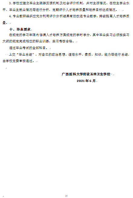 广西医科大学附设玉林卫生学校2021级护理专业人才培养方案