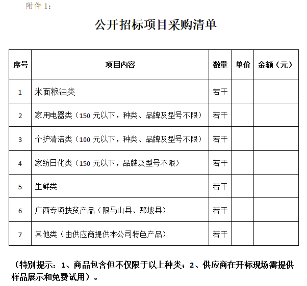 1.遴选公司应为广西区内供应商,所提供的产品必须在营业执照经营范围内;