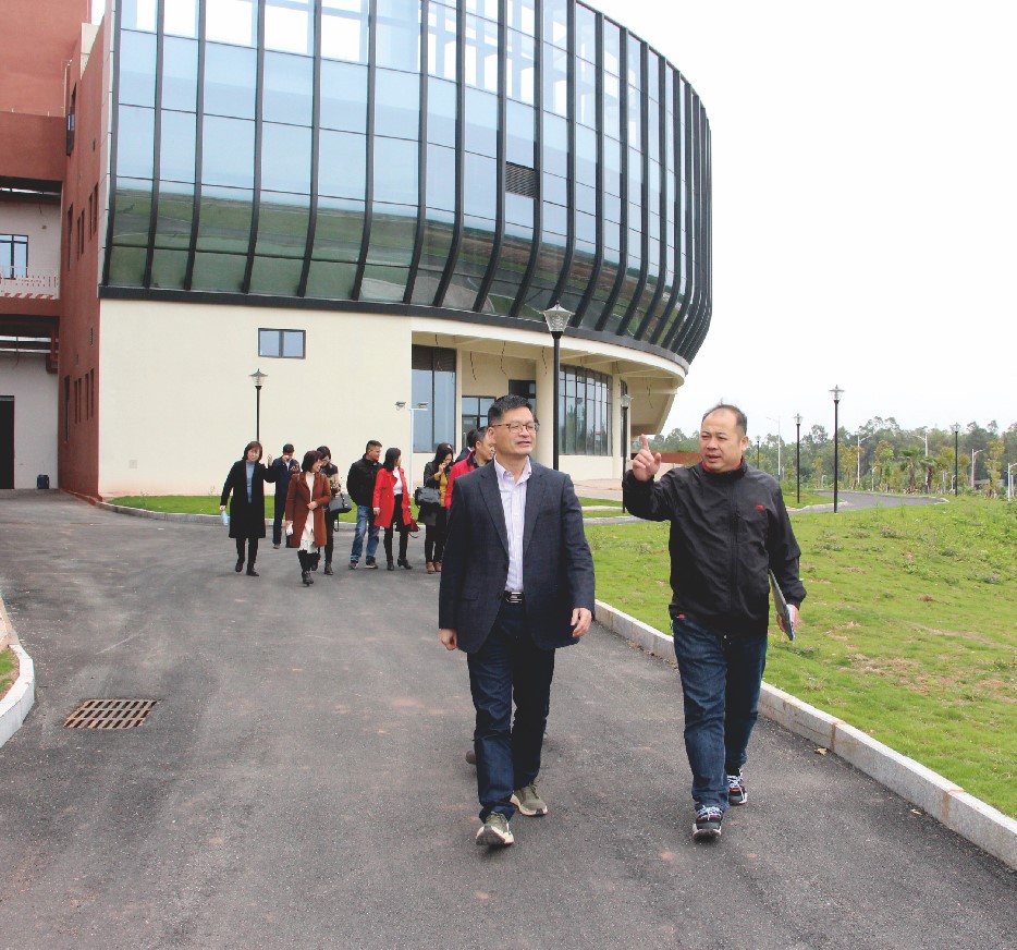2021年3月22日,学校党委副书记莫曾南(左一)到玉林校区调研学生、团建工作,指导校区建设