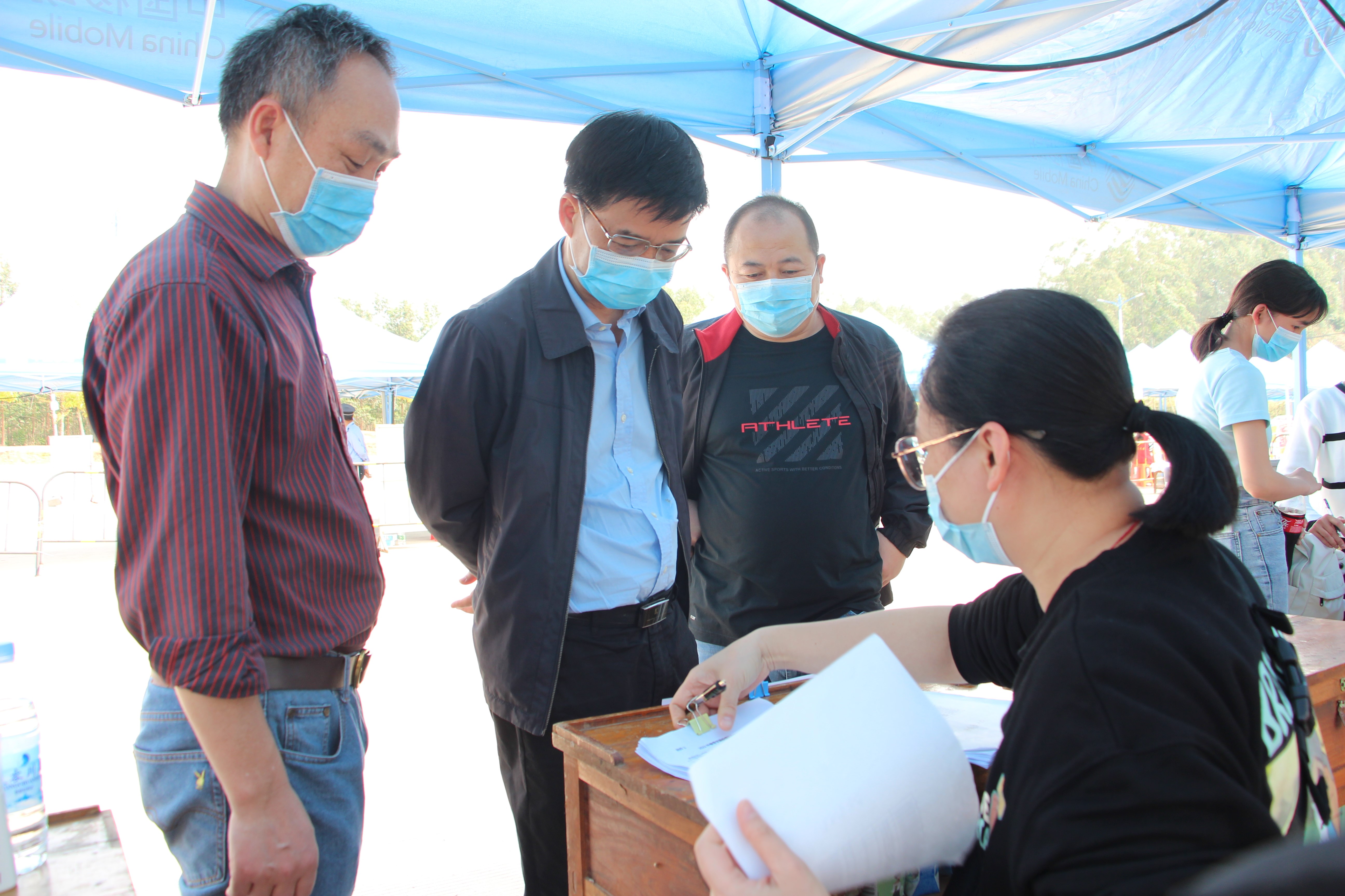 2022年3月5日,学校党委常委、副校长伍伟锋(左二)到玉林校区指导校区学生返校、教学和心理辅导工作。