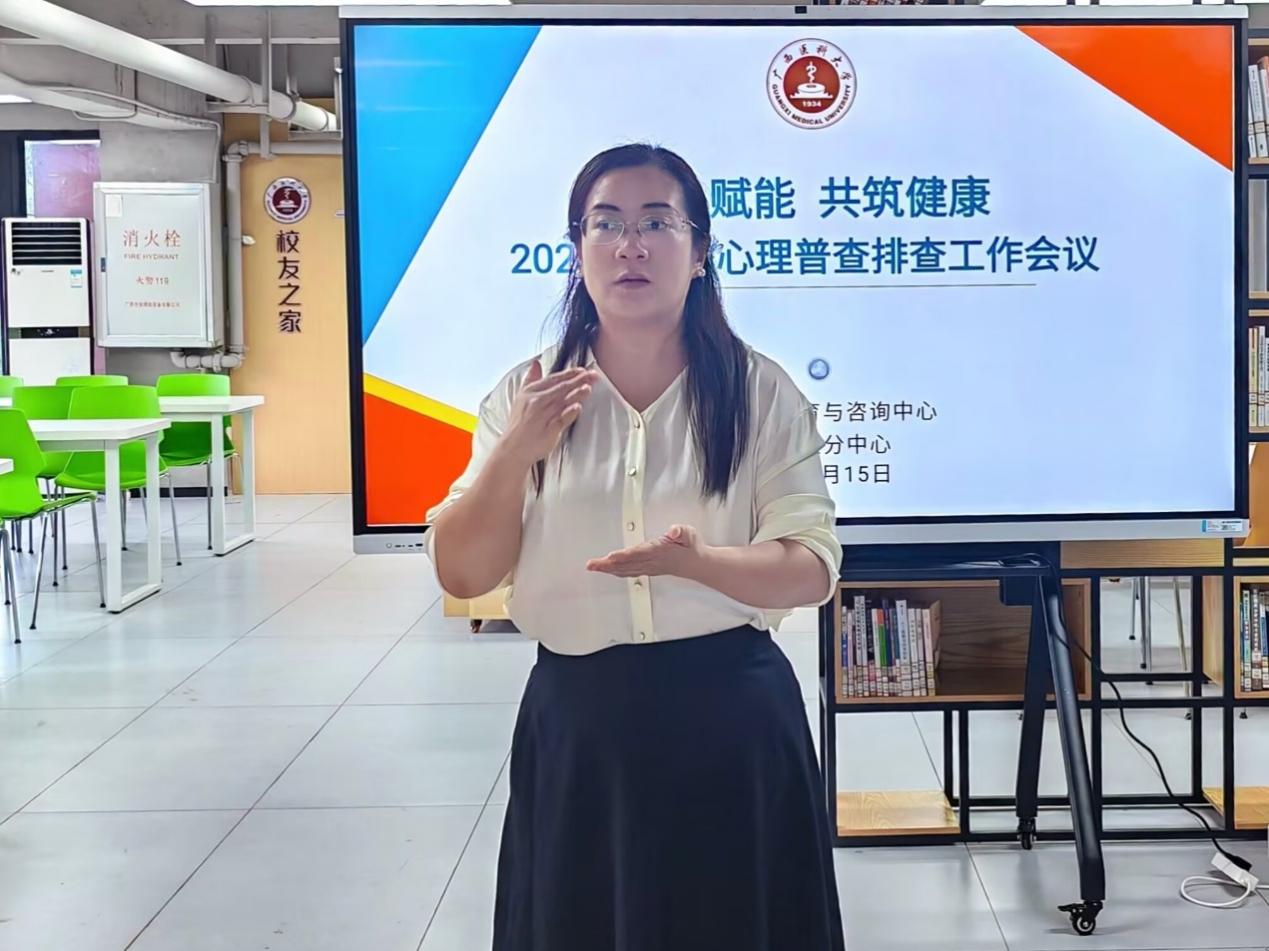 培训以“育心赋能 共筑健康”为主题,广西医科大学心理健康教育与咨询中心玉林校区分中心钟宁泽老师深度解读普查结果分析与工作规范,系统演示心理档案建立与系统操作流程,并将真实案例与教学视频贯穿培训过程,有力强化了参训教师的实操认知。