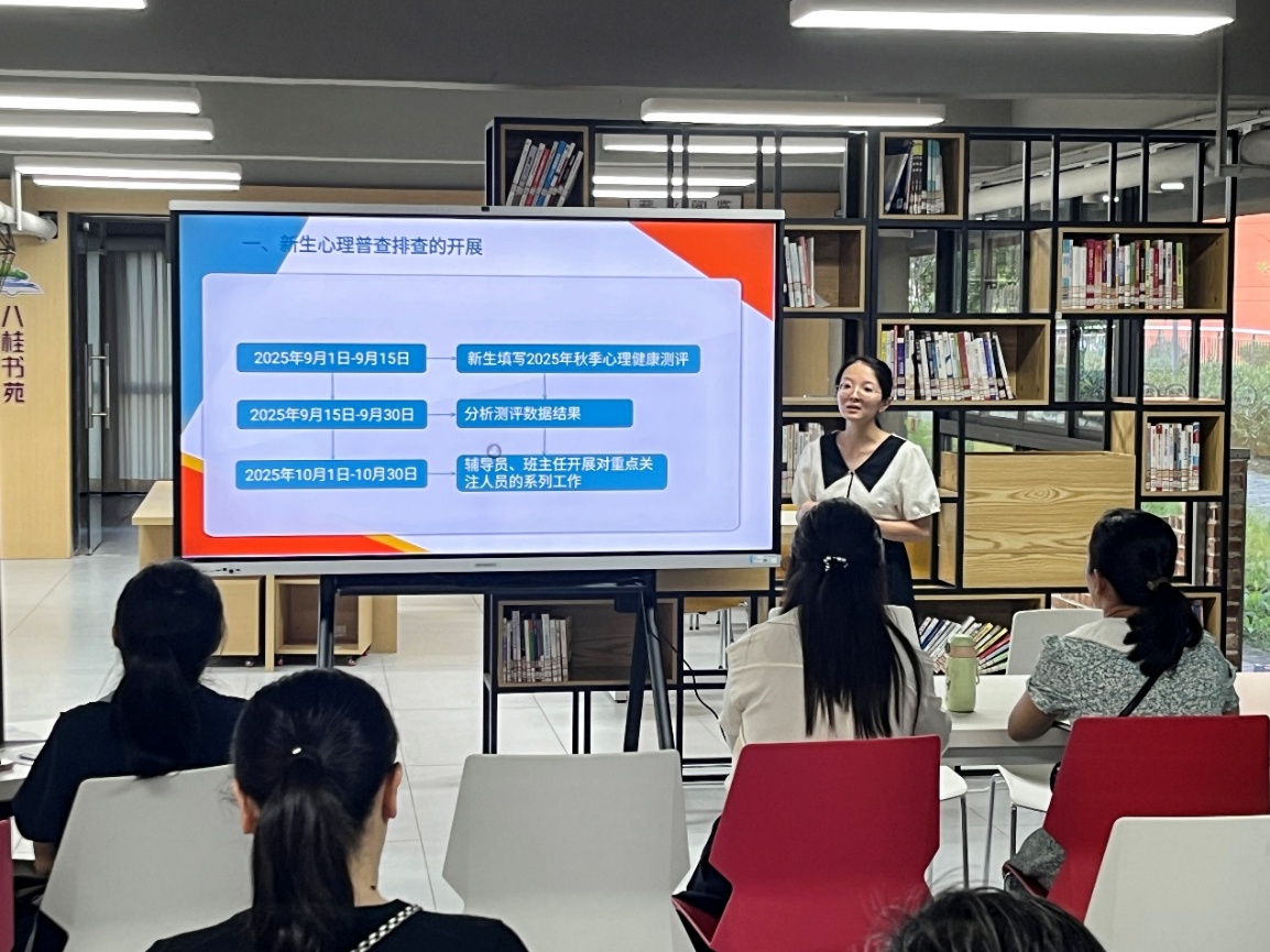 为进一步做好2025级新生心理工作,10月15日下午,玉林校区在“一站式学生社区”举办2025年秋季新生心理工作培训。培训由玉林校区、附设玉林卫生学校党委副书记李云凤主持,2025级全体新生班主任、辅导员参加。