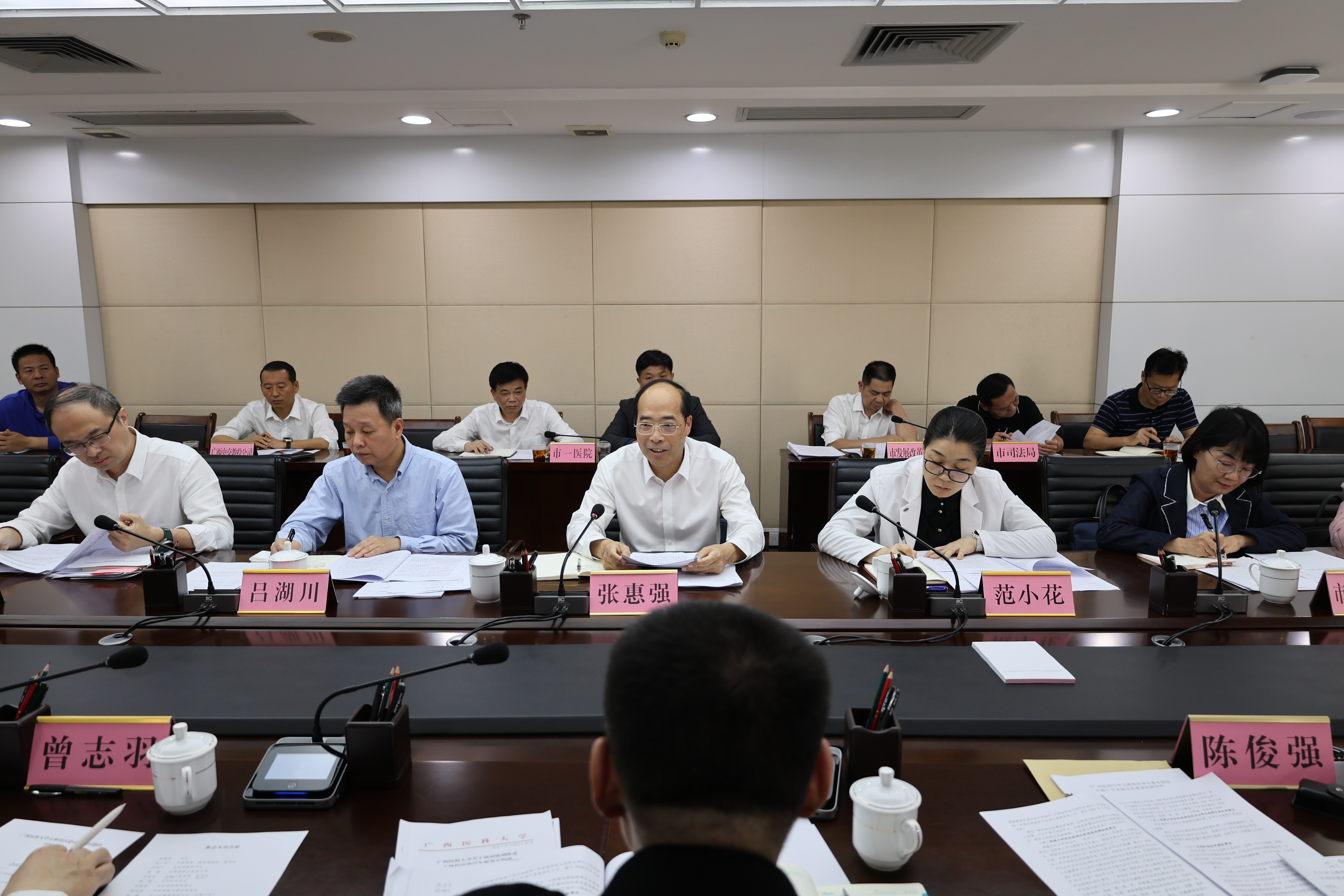 学校副校长陈俊强,玉林市副市长范小花,学校相关部门负责同志、市政府相关职能部门负责同志参加会议。